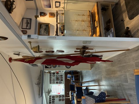 Så er skibsmodellen af Fregatten Jylland endelig på plads i marinestuen. Det ser måske ikke ud af meget, men der er brugt mange timer og kræfter på at realisere projektet.
