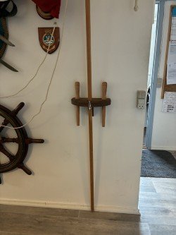 Formanden har i de lange vinteraftener kedet sig lidt, og har så anvendt tiden til at fremstille en ny kombineret naglebænk og flaghylse til marinestuen. Nogen kunne nu tænke, "en hvaffor en"?