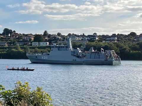 Som det hører sig til, blev der blæst i bådmandspiberne og gjort honnør mellem samtlige skibe og Dannebrog, mens pressefolk så med fra et af hjemmeværnsskibene.