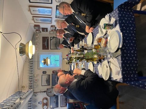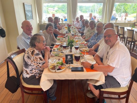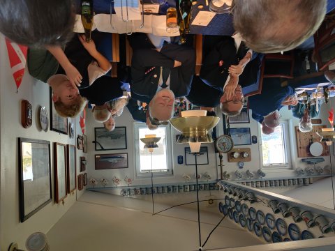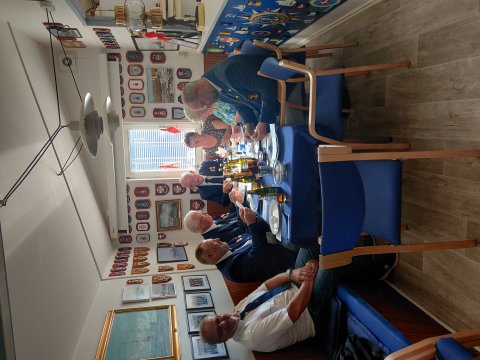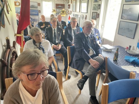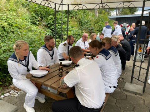 .... efter 3 år med hhv. corona og andre praktiske forhold som gjorde det umuligt at mødes, kunne vi tirsdag d. 18. juli hejse Dannebrog under gaflen og igen hilse 31 glade besætningsmedlemmer velkommen i marinestuen.