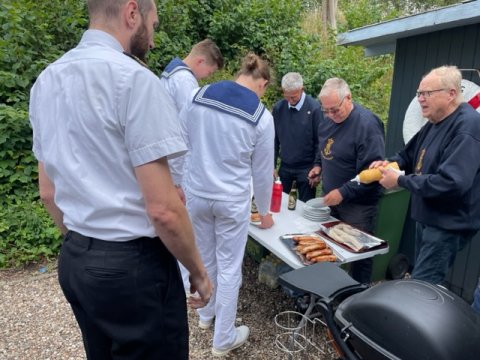 Vi nød, som traditionen byder, den sønderjyske sommer nationalret, ringriderpølser og dertil blev der serveret kølige forfriskninger. Formanden havde bestilt godt vejr, som det fremgår af billederne. Vore egne medlemmer ydede deres absolut bedste for, at vore gæster kunne føle sig velkomne og nyde deres ophold i marinestuen og i Sønderborg. Besætningens meget lækre medbragte kage, blev afslutningsvist nydt sammen med en kop kaffe. Formanden var mere end fornøjet med udfaldet af det hele.