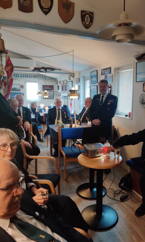 Marinestuen var fyldt til bristepunktet, hvor der dels skulle være plads til, at gennemføre selve foredraget og til den efterfølgende skafning. Ved fælles hjælp gik det helt uden problemer.