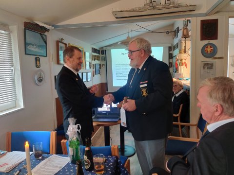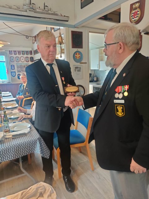 Til den mere højtidelige del, så uddelte vi også et 25 års jubilartegn for medlemsskab af Sønderborg Marineforening - et stort tillykke herfra.