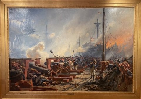 I Slaget på Reden den 2. april 1801 vandt den meget unge Willemoes stor berømmelse. Han fik kommandoen over det generske flådebatteri, en synkefri flåde med 24 kanoner. Det kom til at ligge over for de to store engelske linjeskibe Elephant (med den navnkundige engelske admiral Horatio Nelson om bord) og Ganges. Efter godt 1½ times kamp måtte Willemoes give op og lade batteriet drive ud af kampzonen. Billedet er malet af Chr. Mølsted.
